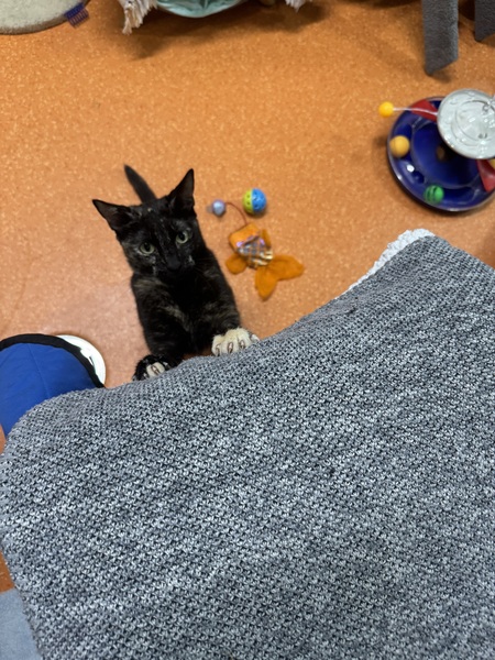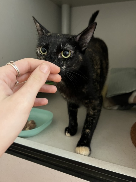 A home with teens or children over 8, who can read and respect basic cat body language, is recommended. Dottie would do best as a single cat, where she can enjoy a calm, peaceful environment. She's a sweet, gentle girl who will offer you little chirps and pats once she feels safe.