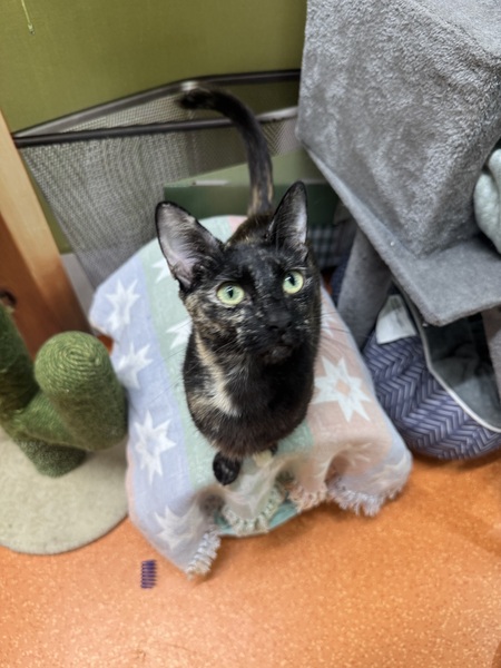 To make her feel safe, she'll need access to scratch posts, cat trees, hides like cardboard boxes or igloos, and shelves or dressers that provide both high and low safe spaces around the home. Dottie's ideal adopter will be understanding and patient, recognizing that she may be timid at first but will blossom once she settles in. She may take some time to feel comfortable enough to show her true personality.