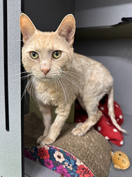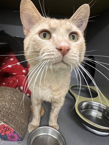 Paden now enjoys wandering around the room, rubbing up against legs, and soaking up some soft pats at his own pace. He's especially fond of chicken treats (they're the key to his heart!) and responds beautifully to calm, gentle attention.