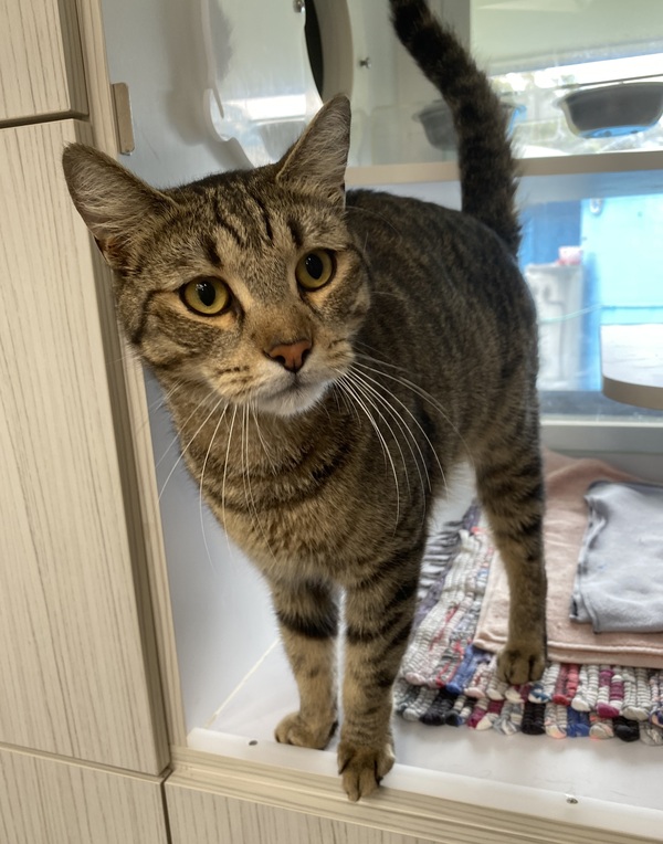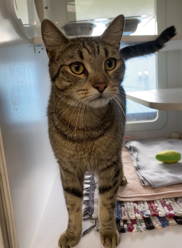 Meet Token, the charming little explorer with a heart full of curiosity and a tail full of confidence! This outgoing boy is on a mission to find his forever family, and he's bringing the entertainment. Whether he's perched like royalty on a tower or scaling a scratcher like a feline mountaineer, Token is always up for adventure. He's a professional people-watcher, a top-tier cuddle consultant, and a guaranteed mood booster. Token's ideal home includes cozy hideaways for when he needs a breather, plenty of playthings to keep his clever mind amused, and humans of all ages to adore him. First-time adopters? He's totally cool with that. Got other cats? With a proper intro, Token might just make a few furry friends! Ready to fall in love? Token's waiting to make your home his kingdom-with you as his favorite subject :)