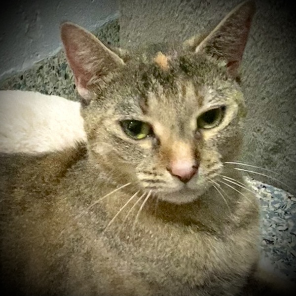 Please meet our Cordelia. Cordelia is a very pretty lady, who's searching for her new, loving home. Please, could it be with you? After all, how could you resist her beautiful, green eyes and the little ginger dot on her forehead. Her coat is know as a brown torbie colour/pattern. When she becomes comfortable and trusting of you, her green eyes will seek you out for attention and she'll come running to you with lots of purrs and head bops.