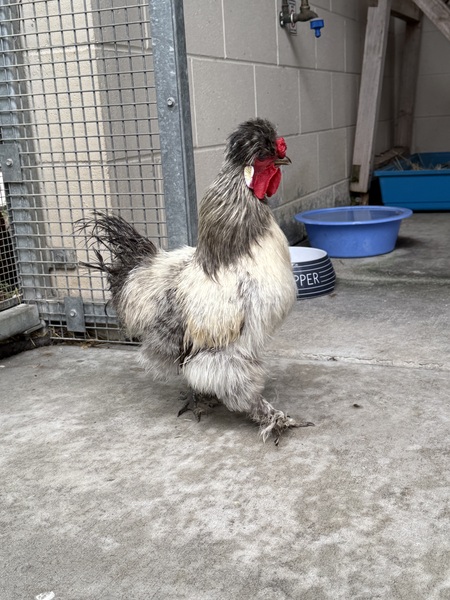 Just looking for a new family who'll be able to give me the love and care I'll need. Did you know that Roosters make great pets if you don't mind crowing-early in the morning and if you have the time and patience to give us attention and training. We Roosters have larger combs, wattles and tail feathers than our female counterparts, and we're well known for protecting the hens. I would appreciate a new family to call my own that I can interact with. Do I sound like the kind of rooster you're looking for?