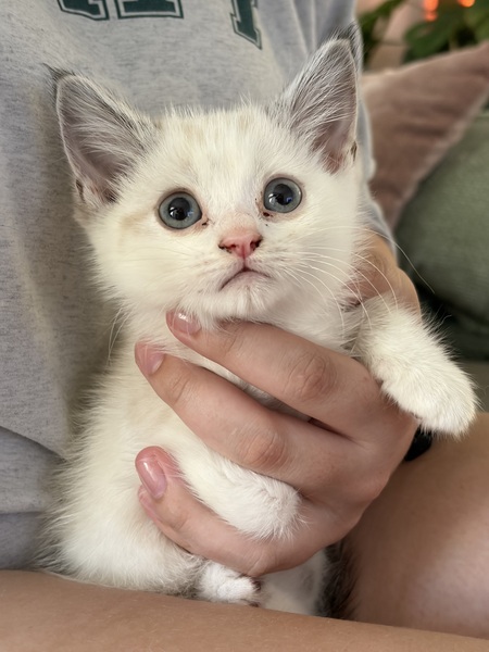 With my soft blue‑point coat, big gentle eyes, and relaxed nature, I'm basically a walking marshmallow. I'm calm, affectionate, and happiest when I'm close to my humans. Some say I'm destined to be a professional cuddle consultant-I specialise in warm laps, slow blinks, and soothing purrs.