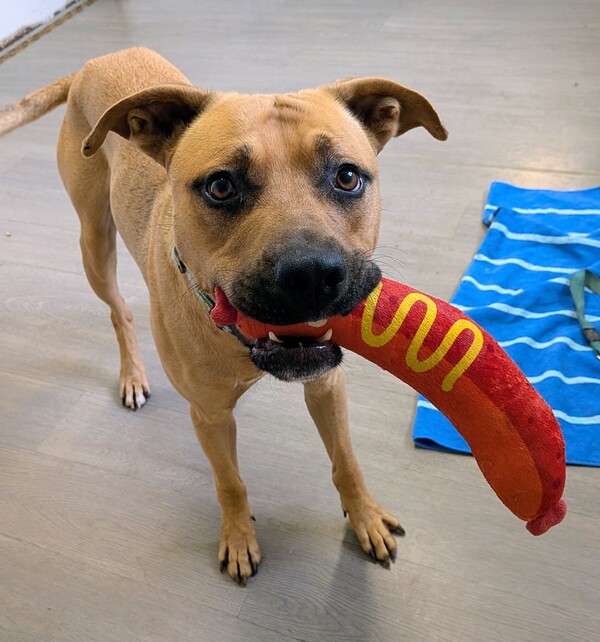 Rocky is an active, happy‑go‑lucky boy with a big heart and an even bigger enthusiasm for life. He loves to move, explore and be part of whatever his people are doing, making him a great match for someone who enjoys an active lifestyle. He's eager to learn, motivated to please and full of potential for an adopter who's ready to guide him with patience and consistency.