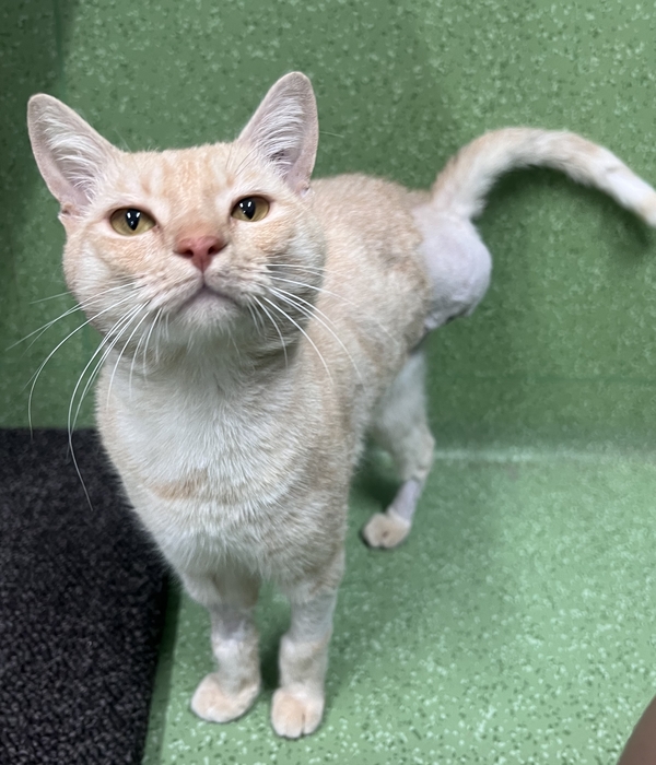 Hey there, Darwin here. I came into the RSPCA via ambulance with an injured leg. Sadly I had to have a leg amputated, but despite my timid nature at the moment, I'm a brave and affectionate litte guy. I love gentle pats and of course I love my food especially chicken. I'll need to be started in a small launch room and allowed time to settle before allowing to explore the rest of the house. It would be great to provide me with ample safe spaces both high and low all around the house: Scratch posts/ Cat trees, hides (like cardboard boxes and cat igloos), access to shelves/ dressers etc. It is recommended I be adopted to a patient and understanding adopter who can recognize that Darwin will be timid going into a new environment and may take a little while to settle in before she shows her true self! Ideally only older children or teens in the home who appreciate and understand cat body language. Anyhow, all that said, I have so much to offer my new family and would love the opportunity for a second chance at life.