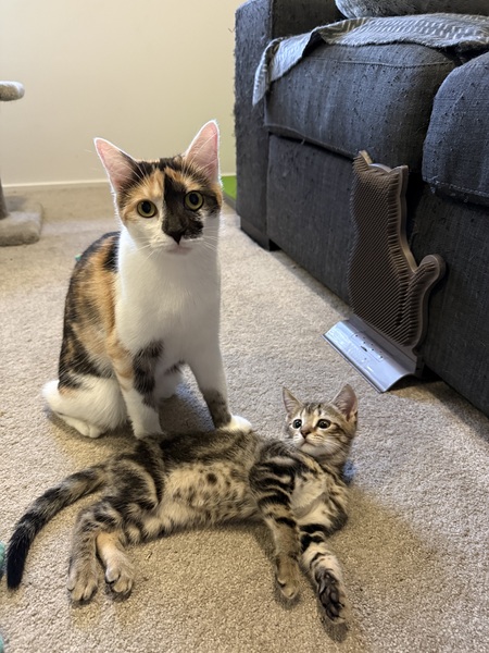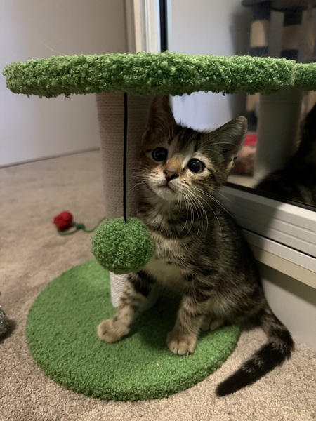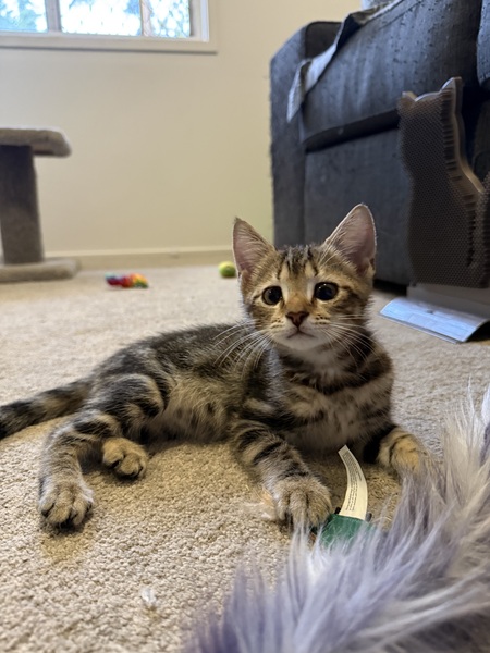Tim Tam thrives with other cats and loves to play-he's energetic, goofy, and enjoys zoomies and roughhousing with his kitty friends. He is highly toy-motivated, especially with wand and ball toys, and also very food-driven. Treats (particularly paste-style) are a great way to build his trust. He really loves roast chicken too!